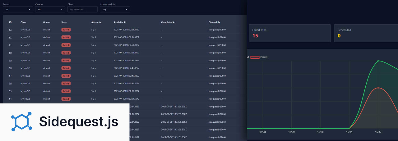 Sidequest.js: A New Scalable Job Execution Option for Node — A modern, scalable background job processor for Node apps that includes a Web-based dashboard, the ability to support multiple backends out of the box, and TS-first ergonomics. GitHub repo. LGPL 3.0 licensed. Merencia and Guizzo |