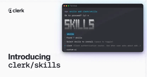 Stop AI Agents from Generating Outdated Clerk Code — Cursor, Copilot, and Claude Code are trained on old Clerk patterns. Clerk Skills is a one-command way to give your agent up-to-date knowledge to build auth flows, sync users to databases, set up organizations, and more. One command, and it knows how to build auth the right way.