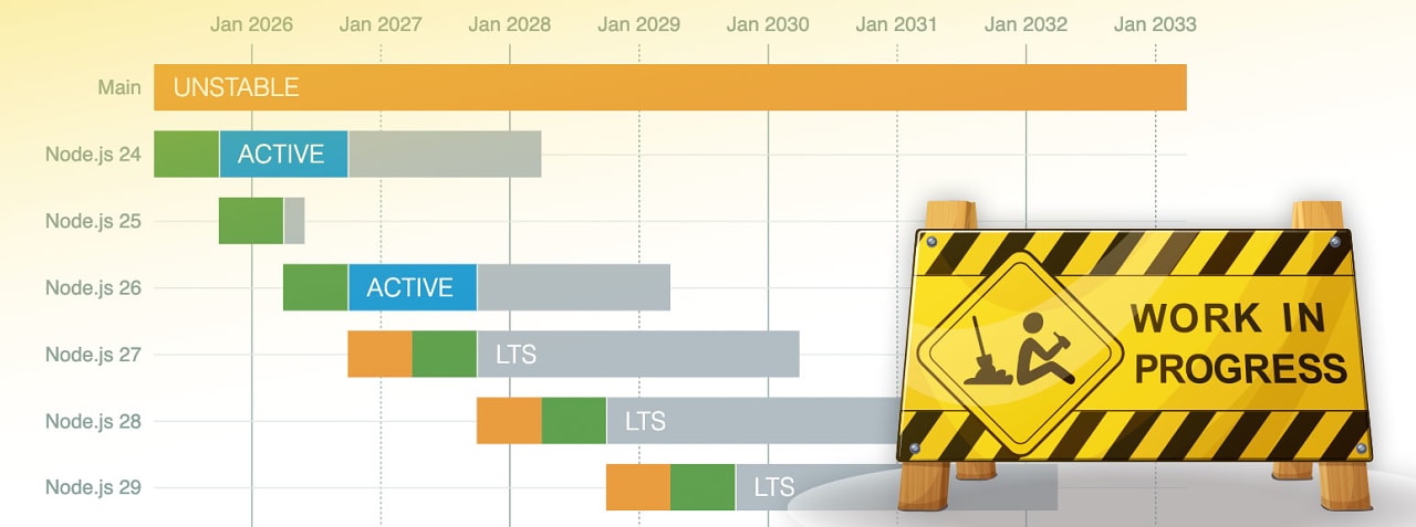 💡 A cute side effect of the change will be the latest LTS Node version will match the year. Node 28 will go LTS in 2028, and so on. |